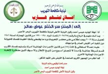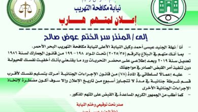 - نيابة مكافحة التهريب إعلان لمتهم هارب/ إلي/المنذر سر الختم عوض صالح