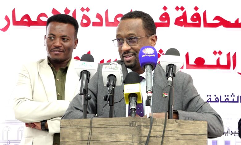 اكد وزير الثقافة والاعلام خالد الاعيسرعلى الدور الوطني للصحفيبن في معركة الكرامة وقطع بان الدولة في حاجة ماسة لجهود الصحفيين والاعلاميين باعتبار ان الحرب لم تكن على صعيد الميدان العسكري فحسب بل اعلامية واقتصادية واجتماعية وقال الاعيسر خلال مخاطبته ورشة دور الصحافة في اعادة الاعمار وتعزير التعايش السلمي التي نظمها مركز الحاكم للخدمات الصحفية والاعلامية بالتعاون مع رابطة الصحافة الالكترونية قال مخاطبا الصحفيين انتم في خانة واحدة مع حملة السلاح الذين يدافعون عن السودان واعلن الاعيسر وجود الكثير جدا من البنود لتدريب الصحفيين وعروض لتمويل المؤسسات الاعلامية القومية والخاصة منها في شراكات استراتيجية مع الدول ومنظمات وجهات خارجية