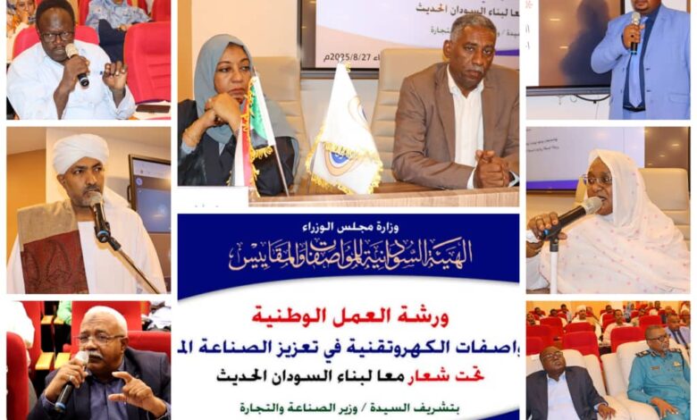 أختتمت الهيئة السودانية للمواصفات والمقاييس برنامج ورشة عمل بعنوان “دور المواصفات الكهروتقنية في تعزيز الصناعة المحلية” تحت شعار معا لبناء السودان الحديث، بمشاركة دولية من خبراء باللجنة الدولية الكهروتقنية (IEC) واللجنة الأفريقية للتقييس الكهروتقني (AFSEC).وعدد من الجهات الوطنية والخبراء في مجال الكهرباء وشركات المساح الدولي ورئيس وأعضاء شعبة مصنعي الأجهزة الكهربائية.