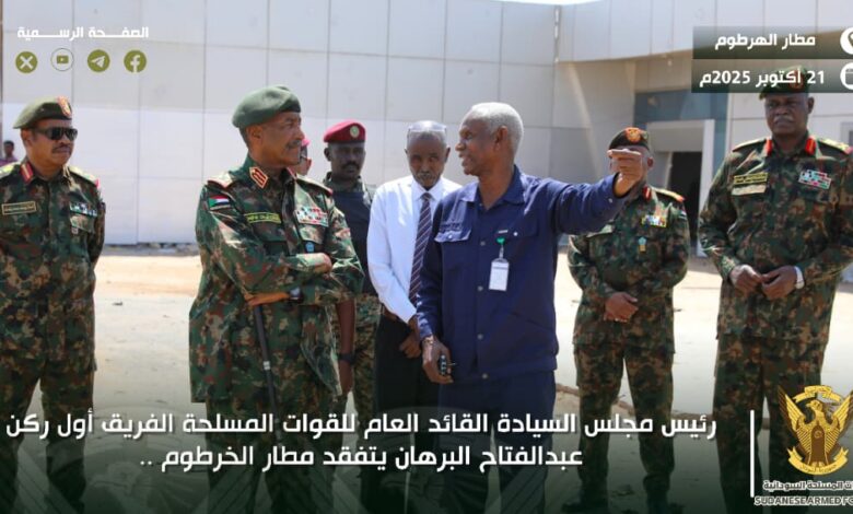 تفقد اليوم السيد رئيس مجلس السيادة – القائد العام للقوات المسلحة الفريق أول ركن عبدالفتاح البرهان مطار الخرطوم الدولي، وحيا سيادته الشعب السوداني مثمناً صموده في وجه جرائم مليشيا آل دقلو الإرهابية.