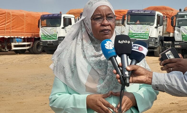 سيرت مفوضية العون الإنساني قافلة مساعدات ودعم لنازحي ولايتي كردفان ودارفور بالخرطوم والنيل الأبيض بحضور مفوض العون الانساني سلوي آدم بنية ووالي شمال دارفور الحافظ بخيت