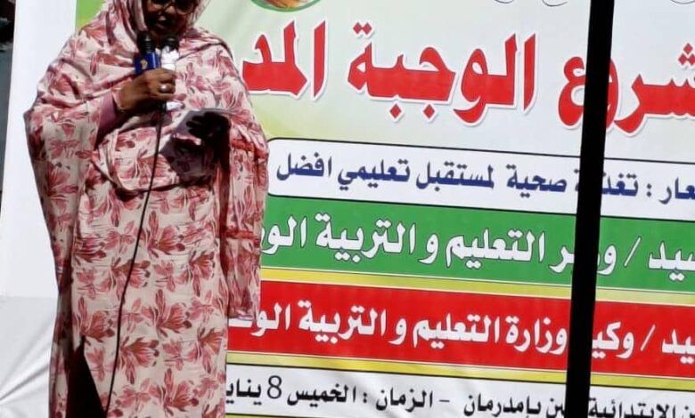 دشنت وزارة التعليم والتربية الوطنية وبرعاية الوزير د. التهامي الزين حجر، صباح اليوم بمدرسة الدباغين الابتدائية بمحلية أمدرمان مشروع الوجبة المدرسية الذي نظمته إدارة الصحة والتغذية المدرسية بالوزارة بالتعاون مع منظمة (كلنا قيم)، وأمه بالحضور لفيف من قيادات وزارتي التعليم والتربية الوطنية الاتحادية وولاية الخرطوم.