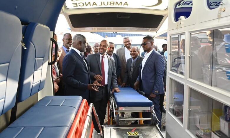 من ناحيته كشف د. هيثم محمد إبراهيم وزير الصحة عن خطة واضحة لتوزيع عربات الإسعاف على الولايات بعدالة وحسب حاجة كل منها ؛ مشيراً إلى توزيع أعداد مقدرة من العربات ضمن برنامج الإسعاف القومي على الولايات خلال فترة الحرب ، كاشفاً عن خطة الوكالة القومية للرعاية الطارئة بالوزارة لربط الإسعاف القومي بين المستوى الاتحادي والولائي عن طريق ال G P S والسعي لربطه مع إدارة السلامة المرورية .